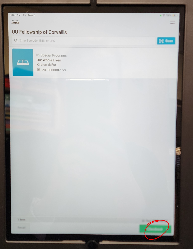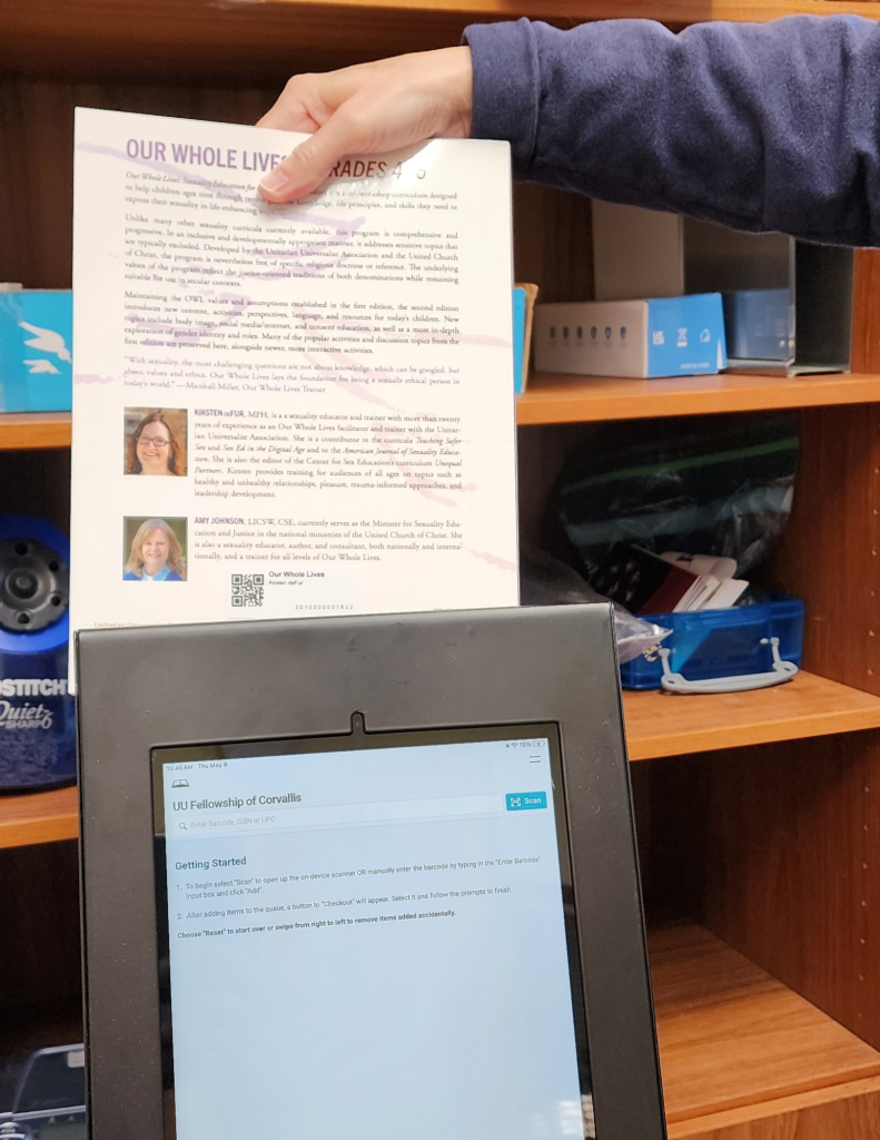 All Fellowship friends and members are invited to request a library card and start using our digital checkout system. Of course, you can still use the notebook, located on the shelf to the left of the window, but by using your very own digital library card, you help reduce the administrative overhead involved in keeping the library up and running.