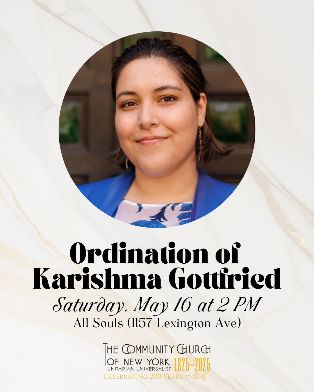 Fellowship member Karishma Gottfried invites you to attend her ordination to Unitarian Universalist ministry on Saturday, May 16, 2026 at 2 PM (Eastern time) in New York City! Those willing to travel are welcome to attend in person. The service will also be streamed online. See more details and RSVP at this link: https://partiful.com/e/r8mVpRCktdr0daerWzIU?.